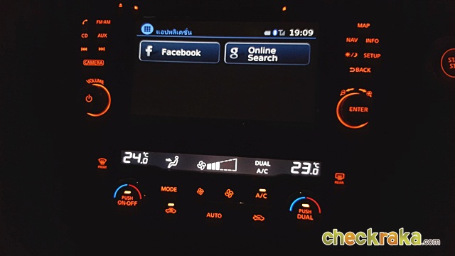 เครื่องเสียงจอสัมผัสขนาด 7 นิ้ว รองรับ MP3/CD/DVD/USB/AUX เชื่อมต่อ Bluetooth, internet, พร้อมระบบนำทาง และ Nissan connect ให้ภาพละเอียดคมชัดเมื่อปรับเป็นจอแสดงภาพขณะถอยหลัง ถัดลงมาเป็นชุดควบคุมแอร์อัตโนมัติแยกปรับอุณหภูมิซ้าย-ขวา พร้อมช่องแอร์เป่าผู้โดยสารตอนหลัง