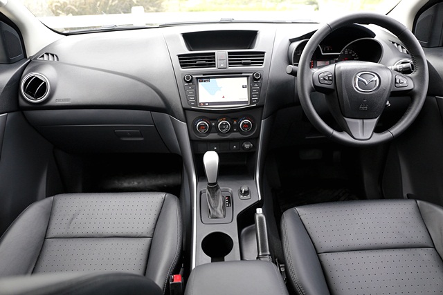 นับเป็นรถปิกอัพที่เพียบพร้อมด้วยอุปกรณ์ภายในห้องโดยสารมากที่สุดรุ่นหนึ่ง โดยเฉพาะรุ่นสูง มีเฮดยูนิทดูหนัง ฟังเพลง จากอุปกรณ์และการเชื่อมต่อได้สารพัดรูปแบบ ถ่ายทอดผ่านจอทัชสกรีนขนาด 7 นิ้ว แบบลดแสงสะท้อนหน้าจอ ให้มุมมองคมชัด พร้อมฟังก์ชั่น Auto-Dimmer ปรับลดความสว่างอัตโนมัติ เมื่อเปิดไฟหน้า นอกจากนี้ยังสามารถควบคุมเครื่องเสียงได้อย่างสะดวกบนพวงมาลัยมัลติฟังก์ชั่น (เฉพาะรุ่น leather AT, 4x4) เด่นสุดๆ คือ การจำลองซีดี Virtual discs CDC เก็บบันทึกข้อมูล CD ได้ถึง 6 แผ่น ด้านระบบนำทางจะแยกเสียงดังเฉพาะที่ลำโพงหน้าขวาเพื่อความชัดเจนขณะฟังเพลง ส่วนระบบปรับอากาศภายในรถรุ่นท็อปเป็นแบบอัตโนมัติอย่างในภาพด้านบน สวยงามและชัดเจน
