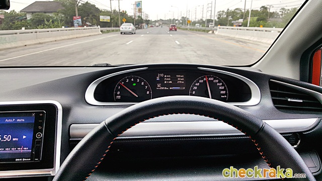 ภายในพื้นฐานคล้าย "วีออส" ด้วยระดับเบาะนั่งที่ไม่สูงมากนัก และมีคอนโซลกลางคั่นไว้ แต่สิ่งที่เด็ดสุดคือ มาตรวัดแบบจอสีเรืองแสง พร้อมจอแสดงผล TFT 4.2 นิ้ว บอกการทำงานรายละเอียดต่างๆ ครบชุด เช่น ระยะทาง, อัตราสิ้นเปลืองเฉลี่ย, คะแนนการขับขี่แบบประหยัด, ระยะทางที่ใช้, อุณหภูมิภายนอก เป็นต้น