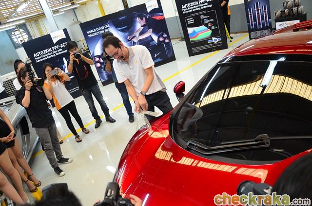 คุณพสุพงษ์ ลีนุตพงษ์ กรรมการผู้จัดการบริษัท ออโต้ซคิน จำกัด แนะนำพร้อมเปิดตัวนวัตกรรมฟิล์มกันรอยปกป้องสีรถรุ่นล่าสุด ที่ให้ประสิทธิภาพสูงสุด ภายใต้การพัฒนาร่วมกับบริษัทชั้นนำของญี่ปุ่น ซึ่งได้นำเทคโนโลยีการ Coating เข้ามาผสานกับชั้นของเนื้อฟิล์มเป็นเจ้าแรกในโลก "PPF - ACT Paint Protection Film with Coating Technology" พร้อมสาธิตการติดตั้งเนื้อฟิล์มบนตัวถังยนตรกรรมชิ้นเอกระดับโลก PAGANI HUAYRA และซูเปอร์คาร์อีก 2 รุ่นคือ Porsche และ Mclaren เมื่อวันที่ 5 สิงหาคม ณ บริษัทยนตรกิจอุตสาหกรรม (YKI) ถ.ร่มเกล้า
