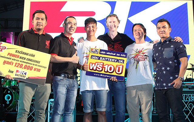 บริษัท ผลิตภัณฑ์ 3เค จำกัด ผู้นำในการผลิตและจำหน่ายแบตเตอรี่รถยนต์ของเมืองไทย ภายใต้แบรนด์ 3เค แบตเตอรี่ ประกาศผลอย่างเป็นทางการแล้วสำหรับผู้ชนะการแข่งขันดวลพลังยิงฟรีคิก "3K Power Kick Challenge" รายที่ 4 ประจำภาคกลาง ที่จะได้บินลัดฟ้าไปชมฟุตบอลที่ประเทศอังกฤษกับผู้ชนะจาก 3 ภาค หลังโชว์ฟอร์มยิงฟรีคิกได้แรงและแม่นที่สุด พร้อมสาวสวยผู้ชนะใจกรรมการได้รับตำแหน่ง "3K Power Race Queen Thailand Brand Ambassador" นางฟ้าแห่งวงการมอเตอร์สปอร์ตคนแรกของเมืองไทย พร้อมกิจกรรมสีสันต่างๆ มากมาย