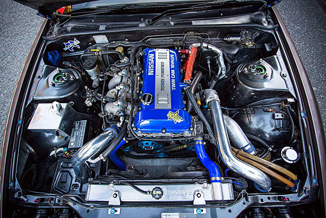 ขุมพลังเครื่องยนต์ขนาด 2.0 ลิตร รหัส SR20DET แบบ 4 สูบ DOHC 16 วาล์ว พ่วง Turbo ของ Tomei และส่วนประกอบภายในจาก APEXi ที่ปรับแรงม้าให้มากขึ้นไปถึง 400 แรงม้า