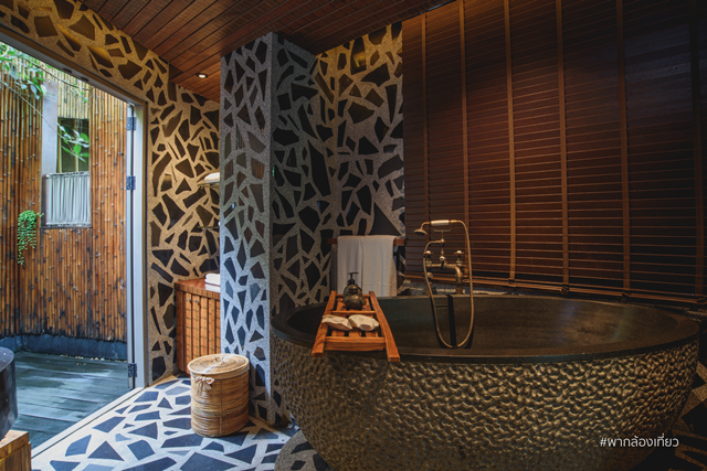 และแบบ Open Air เงยหน้ามองท้องฟ้า มองต้นไม้ตอนอาบน้ำกันได้ด้วย ส่วนสิ่งอำนวยความสะดวกก็ครบครัน ทั้งโลชั่นอาบน้ำ แชมพู ไดร์เป่าผม