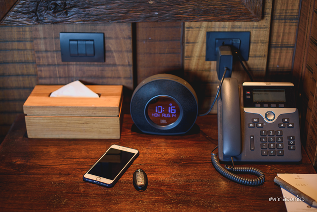 มีลำโพงเอาไว้ต่อบลูทูธต่อกับโทรศัพท์มือถือให้เราได้ฟังเพลงเบาๆ เพลิดเพลินไปกับบรรยากาศสวยๆ ของรีสอร์ท