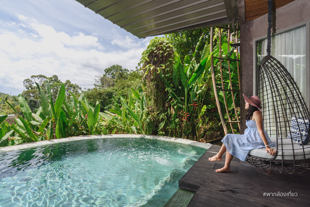 ถึงฝนตกแต่ไม่ใช่อุปสรรคในการว่ายน้ำ กับสระสวยๆ ของห้องพัก ว่ายน้ำกลางสายฝนก็เก๋ไปอีกแบบ เย็นชื่นใจจริงๆ สระว่ายน้ำที่นี่ส่วนตัวมากๆ ไม่ต้องอายเวลาจะใส่บีกินนี่เลย เพราะจะมีต้นไม้ปิดบังสระว่ายน้ำของเราไว้ ไม่มีใครมองเห็นแน่นอนจ้า