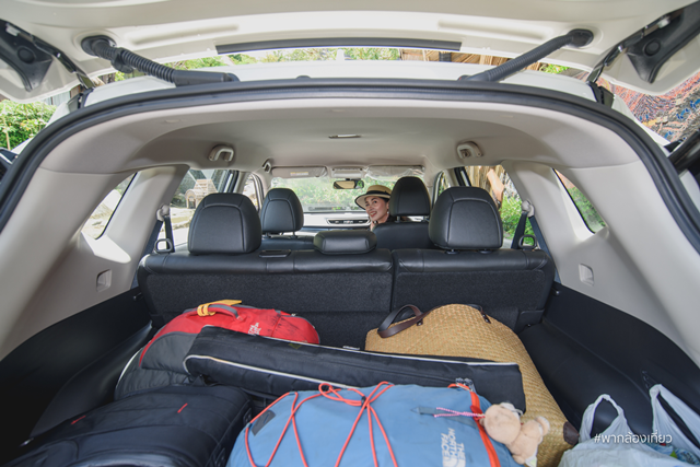 ก่อนกลับขอเช็คกระเป๋าและของให้เรียบร้อยก่อนนะ จะได้ออกเดินทางกันต่อ และด้วยสัมภาระของเรามีเยอะมากจนบางครั้งก็คิดว่าจะขนมาทำไมมากมายทั้งกระเป๋าเสื้อและอุปกรณ์ต่างๆ สำหรับถ่ายรูป ตอนแรกก็กังวลว่าพื้นที่เก็บของท้ายรถจะเก็บได้หมดไหม แตก็สบายใจหายห่วงได้เลยค่ะ เพราะที่เก็บของด้านหลังของ NISSAN X-TRAIL กว้างมาก ขนไปได้ทุกสิ่ง นี่ขนาดยังไม่ได้ปรับพับเบาะแบบราบเพื่อเพิ่มที่เก็บของนะ ก็ขนทุกอย่างไปได้หมดแบบสบายๆ ตอนขากลับคิดว่าจะซื้อของฝากกลับบ้านหลายอย่างเลยล่ะ ตอนนี้ไม่ห่วงและเพราะมีที่ว่างเหลืออีกเพียบบบ