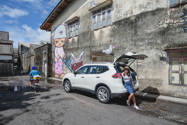 และจุดที่เราจะมาเที่ยวกันต่อคือ Phuket Street Art เป็นจุดถ่ายรูปแบบชิคๆ แนวๆ ระหว่างการเดินทางเราก็ต่อโทรศัพท์มือถือของเราเข้ากับระบบเครื่องเสียงและหน้าจอแบบสัมผัสของ NISSAN X-TRAIL มีให้เลือกแบบต่อ Bluetooth แค่นี้ก็สามารถเชื่อมต่อฟังเพลงกันแบบเพลิดเพลิน ง่ายและสะดวกมาก