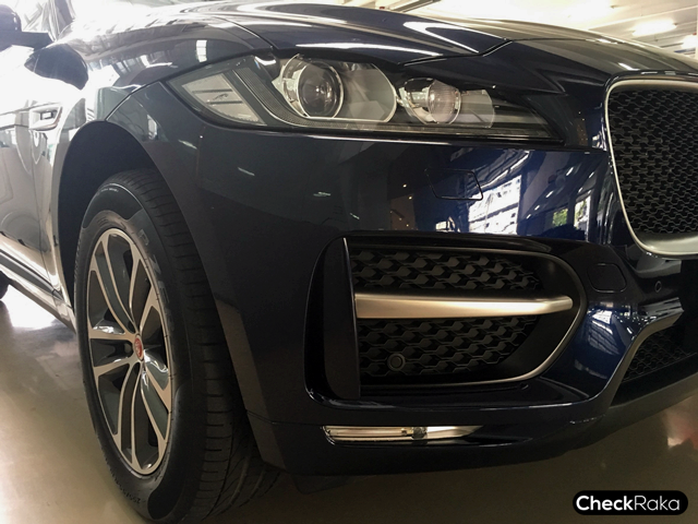 หนึ่งในจุดสังเกตง่ายๆ ในความแตกต่างของรุ่น R-Sport กับรุ่นย่อยอื่นๆ ของ F-Pace ก็คือ กันชนหน้า ที่จะมีดีไซน์แตกต่างกันอย่างชัดเจน และการติดตั้งไฟตัดหมอกด้วย