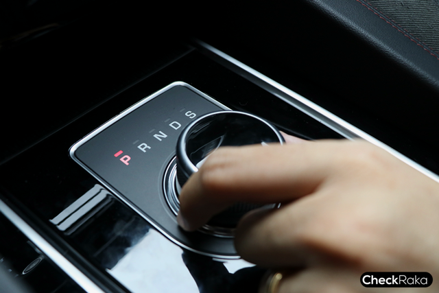 สำหรับเกียร์อัตโนมัติของ F-Pace จะเป็นแบบหมุน ทันทีที่สตาร์ทเครื่องยนต์ ปุ่มหมุนเพื่อเปลี่ยนเกียร์จะค่อยๆ เลื่อนขึ้นมาดูหรูหราสมราคาไม่น้อย สำหรับการเปลี่ยนเกียร์แบบหมุนนี้ สามารถทำได้โดยการบิดไปทางขวาจาก P, R, N, D แต่ถ้าจะเปลี่ยนเป็นเกียร์ S ต้องกดก่อนที่จะบิด ซึ่งการใช้งานก็ค่อนข้างง่ายปรับตัวได้ไม่ยาก (จะมีข้อด้อยอยู่ก็ตรงที่...ไม่สามารถที่จะปลดเป็นเกียร์ว่างได้เมื่อจอดดับเครื่องยนต์แล้ว ทำให้ต้องเข้าซองเพียงอย่างเดียวไม่สามารถจอดขวาง หรือจะจอดแล้วใครก็ไม่สามารถเข็นได้นั่นเอง