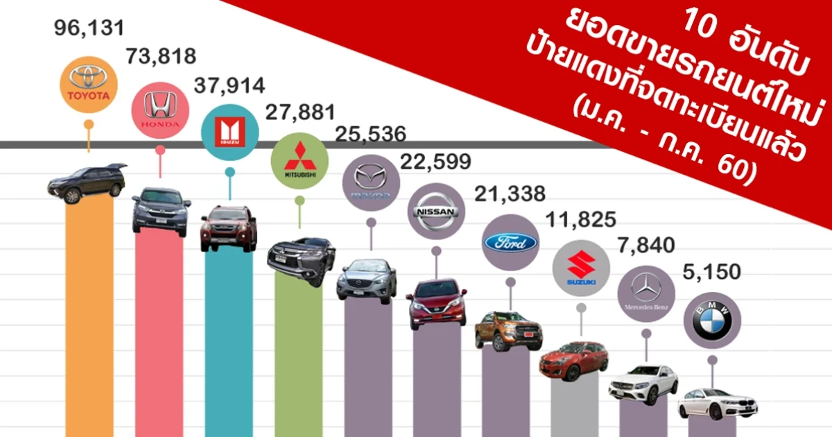 มาแล้วสำหรับยอดขายรถยนต์รวมทุกรุ่นย่อยทุกค่ายที่จดทะเบียนจริงจากทางกรมขนส่ง ในช่วงเดือน มกราคม - กรกฎาคม 2560 ที่ผ่านมา ซึ่งข้อมูลตรงนี้ จะไม่ตรงกับยอดจองนะครับ เพราะอิงยอมจดทะเบียนจริงเป็นหลัก มาดูกันเลยว่า แต่ละค่ายมียอดขายรถยนต์กันไปเท่าไรแล้วบ้าง