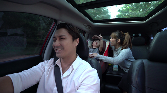 ระหว่างการเดินทางพ่อเอได้เปิด Panoramic Sunroof รับบรรยากาศและลมธรรมชาติ เห็นได้ชัดเลยว่าน้องเลโก้ กับแม่แตงกวาจะชอบเป็นพิเศษ เพราะได้เพลิดเพลินกับการชมวิวในมุมมองใหม่ๆ พอได้เห็นครอบครัวมีความสุขอย่างนี้พ่อเอก็ยิ้มไม่หุบเลยทีเดียว