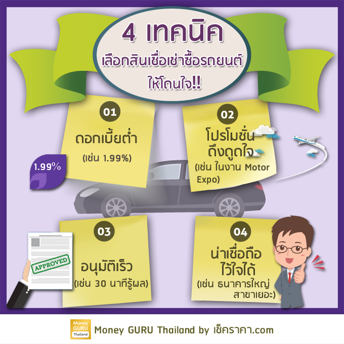 ด้วยความต้องการใช้รถยนต์ที่มีเพิ่มขึ้นเรื่อยๆ ของผู้บริโภคส่งผลให้ตลาดสินเชื่อรถยนต์มีการขยายตัวเพิ่มขึ้นตามไปด้วย พร้อมกันนั้นก็เกิดการแข่งขันจากสถาบันการเงินต่างๆ ในการปล่อยสินเชื่อประเภทนี้ ด้วยการจัดโปรโมชั่นที่ดึงดูดใจลูกค้า ทั้งดอกเบี้ยต่ำ ของแจก ของแถมอีกมากมาย ด้วยเหตุนี้ผลดีจึงเกิดกับผู้บริโภคอย่างเราที่สามารถจะเลือกสถาบันการเงินที่ดี และคุ้มค่ากับเงินที่เราต้องเสียไปได้มากที่สุด วันนี้ CheckRaka.com จึงไม่พลาดที่จะนำเทคนิคสุด COOL!! ในการเลือกสินเชื่อเช่าซื้อรถยนต์มาฝากทุกคนค่ะ