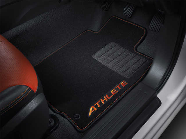 ไม่เพียงภายนอก ภายในยังได้รับการปรับลุคให้ดูสปอร์ตขึ้นด้วยการตกแต่งใหม่ด้วยสีทูโทนดำ-ส้ม ทั้งเบาะ, หัวเกียร์ ต่างผลิตจากหนังและเดินตะเข็บด้วยดายสีส้ม ทั้งยังมีการปักชื่อรุ่น Athlete ทั้งที่เบาะนั่งและพรมพื้น ส่วนอุปกรณ์อำนวยความสะดวกก็มีมาให้ครบครัน อาทิ หน้าจอระบบสัมผัสพร้อมระบบเชื่อมต่อ Apple CarPlay ทั้งยังสามารถสั่งงานด้วยเสียง ฯลฯ