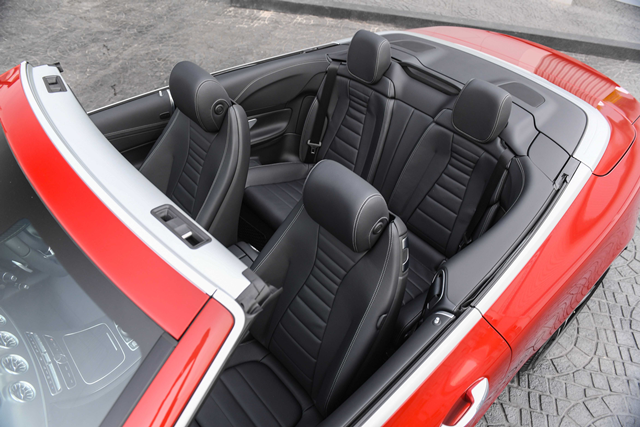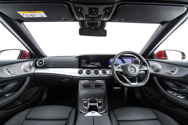 E 300 Cabriolet AMG Dynamic ได้รับการออกแบบภายในให้เป็นแบบ 4 ที่นั่ง โดยเบาะทั้ง 4 เป็นเบาะหนังแบบสปอร์ต ที่มีการเสริมวัสดุด้านข้างเพื่อลดแรงกระทำต่อตัวผู้ขับขี่และผู้โดยสาร ทั้งยังมีการพัฒนาพื้นที่ใช้สอยเพิ่มขึ้นอย่างชัดเจน ทำให้ผู้โดยสารตอนหลังไดัรับความสะดวกสบาย และกว้างขวางเป็นพิเศษ อีกทั้งภายในห้องโดยสารสามารถเลือกปรับแต่งไฟได้มากถึง 64 สี เลยทีเดียว