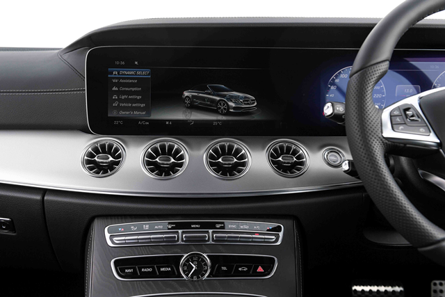 ระบบ COMAND Online ของ E 300 Cabriolet AMG Dynamic จะแสดงผลบนหน้าจอขนาด 12.3 นิ้ว ทั้งการสื่อสาร การนำทาง รวมถึงความบันเทิงต่างๆ ทั้งยังรวมถึงการตรวจสภาพอากาศ ฟังวิทยุออนไลน์ ผ่านระบบอินเทอร์เน็ตด้วย Mercedes-Benz apps และสามารถเชื่อมต่อแล็ปท็อปหรือแท็บเล็ตพีซีกับอินเทอร์เน็ตได้ด้วย WLAN/Wi-Fi hotspot โดยไม่ต้องใช้ SIM Card