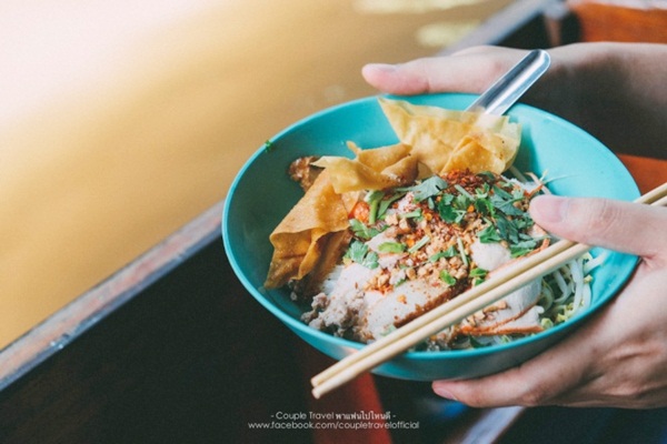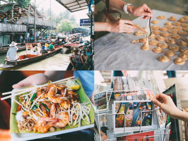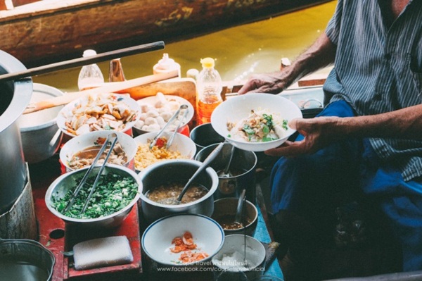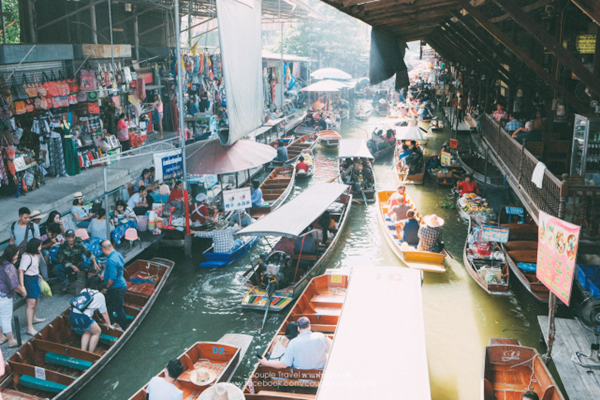 ที่แรกที่เราแวะคือ ตลาดน้ำดำเนินสะดวก มาถึงก็ต้องขอถ่ายภาพมุมนี้จากบนสะพานก่อนเลย บรรยากาศดูย้อนยุคสุดๆ ตลาดนี้ครึกครื้นตั้งแต่เช้า พอเริ่มสายแดดเริ่มออกเต็มที่ แม่ค้าพ่อค้าก็จะเริ่มทยอยย้ายไปขายที่ตลาดอัมพวา
