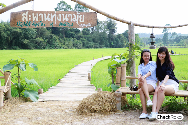 เสร็จจากชื่นชมความสวยงามที่ "ซุ้มต้นไผ่" ก็ออกเดินทางต่อไปอีกประมาณ 30 กว่ากิโลเมตรก็จะถึง "สะพานทุ่งนามุ้ย" เป็นสะพานไม้ไผ่ ตั้งอยู่ในเขตอ.สาริกา เส้นทางเดียวกับทางไปยังเขื่อนขุนด่านปราการชล เป็นสถานที่ท่องเที่ยวใหม่ของ นครนายก และกำลังได้รับความนิยมของนักท่องเที่ยว "สะพานทุ่งนามุ้ย" เป็นสะพานไม้ไผ่ทอดผ่านทุ่งนาสีเขียวสด ซึ่งไม่ได้เก็บค่าเข้าสถานที่ แต่ใช้วิธีการตั้งกล่องรับบริจาคเพื่อนำไปดูแลซ่อมแซมสะพานให้สวยงามอยู่เสมอ การจะมาเที่ยว "สะพานทุ่งนามุ้ย" นั้นแนะนำให้มาตั้งแต่ช่วงเช้า หรือเย็นๆ จะได้บรรยากาศที่สวยงามมากๆ ตอนกลางวันอาจจะร้อนไปสักนิด อีกทั้งสะพานไม้ไผ่แห่งนี้กำลังได้รับความนิยมทำให้ช่วงวันเสาร์-อาทิตย์ จะมีนักท่องเที่ยวมาเป็นจำนวนมาก การเก็บภาพบรรยากาศโล่งๆ อาจจะยากสักหน่อย