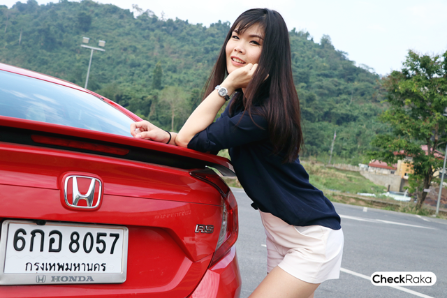 หลังจากได้สัมผัสกับ Honda Civic RED ก็ขอบอกสั้นๆ ว่า "ความรู้สึกเมื่อแรกเห็นต้องบอกว่า Civic คันนี้ไม่ได้มีดีแค่สีแดง เหมือนที่ทาง Honda สื่อไว้ว่า "Not Just RED" เพราะว่าตัวรถมีความสวย เท่ ดูมีเสน่ห์ ขับไปที่ไหนใครๆ ก็ต้องเหลียวมอง ซึ่งจริงๆ ส่วนตัวก็ชอบ Civic อยู่แล้วเพราะด้วยดีไซน์ที่มีความปราดเปรียว อีกทั้งยังมีความกว้างขวางสะดวกสบาย ด้วยความที่เป็นผู้หญิงตัวสูง แต่พอได้นั่งในตำแหน่งผู้ขับกลับไม่รู้สึกอึดอัด และระบบอำนวยความสะดวกมากมาย อาทิ ระบบ Engine Remote Start ที่มีประโยชน์มากๆ หลังจากที่จอดรถตากแดดตามสถานที่ท่องเที่ยวแล้ว เวลากลับเข้ามาที่รถก็จะสามารถสั่งการให้ระบบปรับอากาศทำงานรอเราไว้แล้ว จากการได้ขับขี่ทั้งในเขตเมือง กับนอกเมืองก็ต้องบอกว่า เครื่องยนต์ 1.5 เทอร์โบของ Honda Civic RED นั้นตอบสนองได้ดีมาก สมรรถนะของรถดีทีเดียวเลยล่ะ"