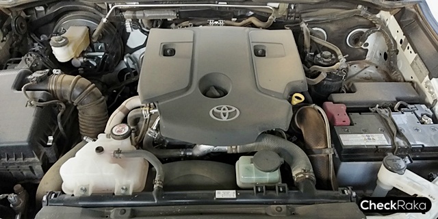 Toyota Fortuner รุ่นเครื่องยนต์ดีเซล 4 สูบ 16 วาล์ว DOHC VN Turbo Intercooler ขนาด 2,393 ซีซี กำลังสูงสุด 150 แรงม้า ที่ 3,400 รอบต่อนาที แรงบิดสูงสุด 400 นิวตันเมตร ที่ 1,600-2,000 รอบต่อนาที เกียร์อัตโนมัติ 6 จังหวะ พร้อม Sequential Shift และ Paddle Shift พร้อมระบบขับเคลื่อน 4 ล้อ ซิกมาร์โฟร์ ปรับรูปแบบการขับเคลื่อนได้ 3 แบบ คือ 2H, 4H และ 4L ถังน้ำมันจุได้ 80 ลิตร ช่วงล่างด้านหน้าแบบอิสระปีกนกคู่ พร้อมคอยล์สปริง และเหล็กกันโคลง ด้านหลังแบบโฟร์ลิงค์คอยล์สปริง และเหล็กกันโคลง พร้อมดิสก์เบรก 4 ล้อ (แล้วนะจ๊ะ) แต่พวงมาลัยพาวเวอร์ยังใช้ระบบไฮดรอลิกอยู่