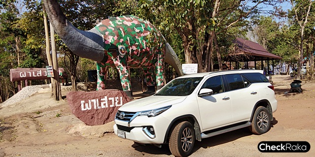 Toyota Fortuner 2.4 4WD รถยนต์อเนกประสงค์ที่มาพร้อมความสะดวกสบายทั้งการขับขี่ทางไกลและผู้โดยสาร สมรรถนะเครื่องยนต์ดีเซล 2.4 ลิตร เทอร์โบ 150 แรงม้า กับแรงบิด 400 นิวตันเมตร พารถ SUV/PPV ไซส์โตขนาดนี้ไปได้อย่างทันใจไม่เป็นปัญหา ให้อัตราเร่งที่ดี การแรงแซงที่ทันใจ และให้ความนุ่มนวลตลอดการเดินทาง นอกจากนี้ยังมีระบบขับเคลื่อน 4 ล้อ ซิคม่าโฟร์ ที่ช่วยให้ขับได้ปลอดภัยมากขึ้น เมื่อเขาโค้งหรือเจอสภาพถนนเปียกลื่น นับว่าจบในคันเดียวเที่ยวคุ้มค่า และประหยัดน้ำมันอีกด้วย โดยการเดินทางครั้งนี้ใช้น้ำมันไป-กลับตลอดทริป ด้วยระยะทางกว่า 2,000 กิโลเมตร ไม่เกิน 5,000 บาทเท่านั้น เหลือเงินเที่ยวได้อีกเพียบ สำหรับค่าตัวในรุ่น 2.4 ลิตร ซิคม่าร์โฟร์ ราคา 1,419,000 บาทเท่านั้น