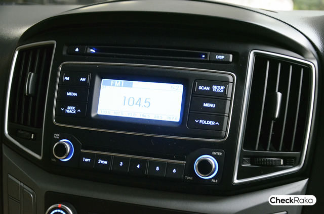 เรื่องของจุดที่ช่วยอำนวยความสะดวกภายในรถ Hyundai H-1 Elite (ฮุนได เอช-วัน อีลิท) ก็ดูจะมีชุดเครื่องเสียง วิทยุ/CD 1แผ่น แบบ 2 DIN ที่สามารถรองรับไฟล์ MP3 กับช่องต่อ USB และ AUX ที่ให้เสียงดังฟังชัดเจนผ่านลำโพง 6 จุด