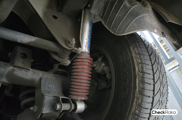 โช้คอัพแบบมาตรฐานจะเป็นแบบ Twin Tube ที่มีแรงดันน้อยกว่า 80 PSI มีน้ำมัน 80% แก๊สไนโตรเจน 20% กับสปริงที่มีค่า K อยู่ที่ 415 ปอนด์ต่อนิ้ว แต่ของใหม่ที่ติดตั้งเข้าไปจะเป็นโช้คอัพระบบ Mono Tube ที่มีลูกสูบใหญ่กว่า สามารถบรรจุน้ำมันได้มากกว่า มีการแยกห้องบรรจุแก๊สกับน้ำมันไม่ให้ผสมกัน ให้การตอบสนองที่แม่นยำกว่าเดิม โดยโช้คอัพรองรับแรงดันได้ 80-350 PSI ลูกสูบเป็นแบบ High Flow ขนาด 46 มม มีระบบซีล 2 ชั้น ป้องกันน้ำมันรั่วไหล กับสปริงหลังที่มีค่า K 340 ปอนด์ต่อนิ้ว High Flow ขนาด ปอนด์ต่อนิ้ว น้อยกว่าสปริงรุ่นมาตรฐาน ถ้าชื่นชอบความนุ่มนวลก็น่าจะชื่นชอบช่วงล่างชุดนี้