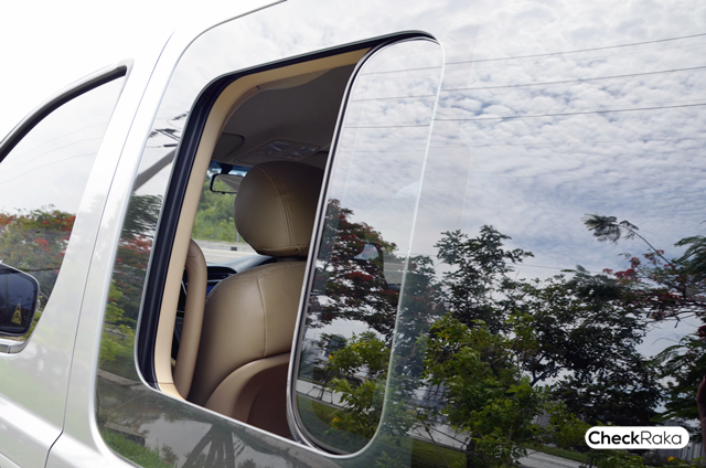กระจกแบบ Flush Glass สามารถเปิดได้โดยไม่ต้องเปิดประตูเลื่อนทั้งบาน เวลาปิดกระจกจะเรียบสนิทไปกับตัวรถ