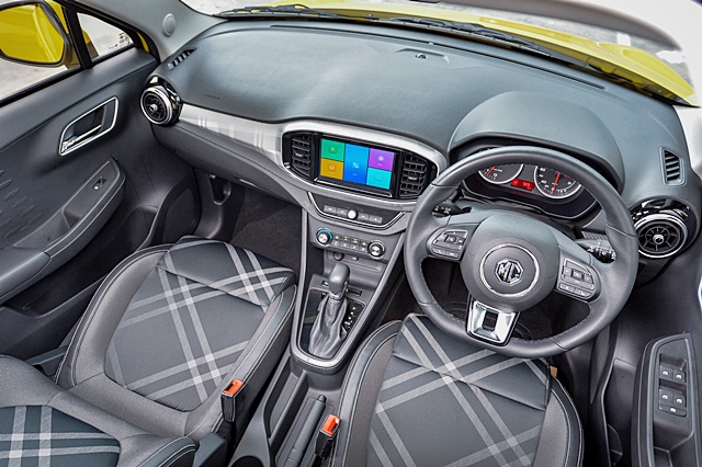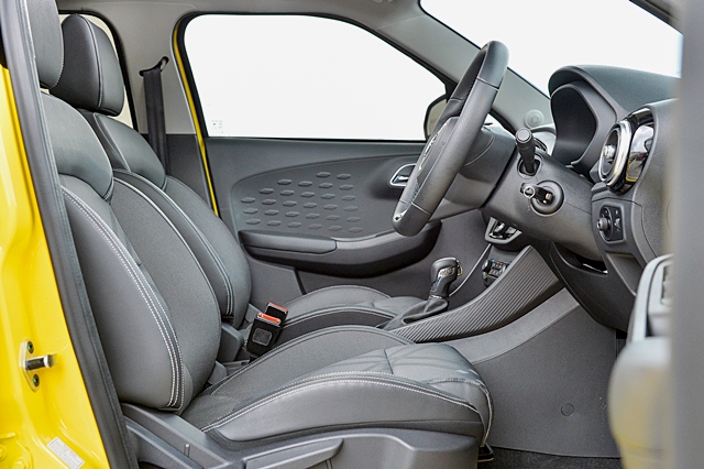 เบาะคู่หน้าแบบสปอร์ตกระชับรับสัดส่วนใช้วัสดุหนังผสมกับผ้าอย่างดี ให้สัมผัสนุ่มสบายพร้อมลายแบบผู้ดีอังกฤษ ส่วนเบาะตอนหลังก็กว้างแม้จะเป็นรถเล็ก มีความพอดีและเป็นเบาะที่ใหญ่พอสมควร