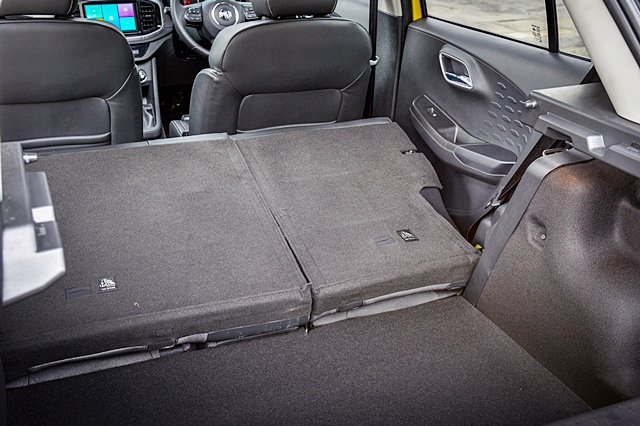เบาะตอนหลังสามารถพับเก็บเพิ่มพื้นที่บรรทุกของเยอะขึ้นและแม้จะไม่พับลงก็ยังมีพื้นที่เก็บของกว้างขวางเกินหน้าเกินตารถยนต์แฮตช์แบ็กตัวเล็กในระดับเดียวกัน