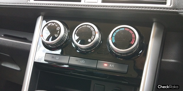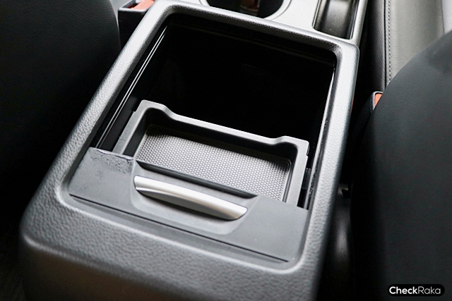 ระบบแอร์แบบสวิตช์มือหมุนถัดลงมามีจุดจ่ายไฟ DC12 V คอนโซลหน้าฝั่งคนนั่งตกแต่งลูกเล่นด้วยแผงลายเคฟล่าร์ คอนโซลกลางมีที่วางแก้วน้ำ 2 ตำแหน่ง และกล่องอเนกประสงค์แบบมีฝาปิดสไลด์ นอกจากนี้ใต้เบาะคนนั่งข้างคนขับมีถาดใส่รองเท้าอีกด้วย