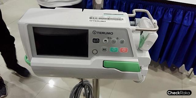 เมื่อถึงจุดหมายแรกโรงพยาบาลหนองฉาง อ.หนองฉาง จ.อุทัยธานี เพื่อมอบอุปกรณ์เครื่องให้สารละลายทางหลอดเลือด สำหรับช่วยเสริมในการรักษาผู้ป่วย ซึ่งนับเป็นเครื่องมือที่จำเป็นมากในปัจจุบัน เครื่องชนิดนี้จะเป็นตัวช่วยในการกำหนดสารละลายต่างๆ ที่เข้าสู่ระบบเลือดด้วยการควบคุมระยะเวลาและปริมาณในการให้ได้อย่างแม่นยำกว่าการใช้ตัวปรับสารละลายด้วยมือแบบดั่งเดิม พร้อมมอบสิ่งของเครื่องใช้เบื้องต้นแก่ผู้ป่วยภายในโรงพยาบาลอีกด้วย