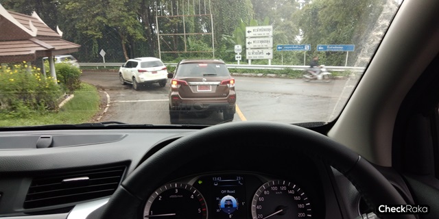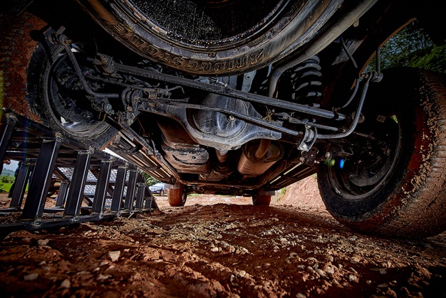 ส่วนในทางแบบ Off-road ที่ได้ทดสอบไม่มากนัก เนื่องจากสนามจำลองการทดสอบที่เชียงรายมีสภาพถูกฝนตกหนักทำให้กลายเป็นโคลนลึกเกินไป จึงได้แค่เพียงขับเฉพาะทางโคลนแบบธรรมดา แต่ก็พอมีหลุมบ่อและเนินเล็กๆ ให้ทดลองระบบความนุ่มนวลของช่วงล่างด้านหลังแบบ 5-LINK อยู่บ้าง ผลก็คือ มีอาการโยนตัวหรือว่าการเหวี่ยงน้อยมาก หรือมีการขยับ-ยกตัวและยุบของตัวรถเป็นไปอย่างช้าๆ ไม่กระเด้งหรือกระชากนัก