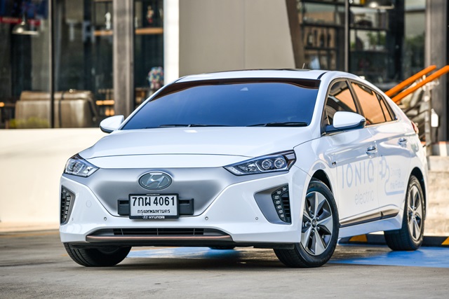 Hyundai IONIQ รถยนต์ไฟฟ้าล้วนหรือ EV ที่ใช้พลังงานขับเคลื่อนจากมอเตอร์ไฟฟ้าเพียงอย่างเดียว ไม่มีเครื่องยนต์สันดาปภายใน เรียกว่า ใช้มอเตอร์ไฟฟ้าในการขับเคลื่อนและมีมอเตอร์ไฟฟ้าอีกชุดสำหรับระบบแอร์และอุปกรณ์ไฟฟ้าในรถยนต์ต่างๆ ราคา 1,749,000 บาท