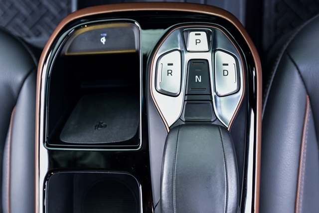 คอนโซลกลางเป็นตำแหน่งสวิตช์เกียร์แบบไฟฟ้า ถัดลงมาเป็นสวิคช์เบรกมือไฟฟ้าและเบรกชั่วคราวอัตโนมัติ นอกจากนี้ยังมีช่อง Wireless Charging สำหรับสมาร์ทโฟนที่มีระบบรองรับการชาร์จแบบไร้สาย