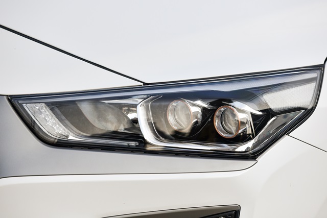 ไฟหน้าโปรเจคเตอร์ LED 2 โคม และไฟสูงฮาโลเจน กระจังแบบทึบไม่มีช่องรับลมเพราะไม่มีหม้อน้ำให้ต้องระบบความร้อน กันชนหน้าเป็นชิ้นเดียวกันพร้อมช่องไฟตัดหมอกที่มีช่องระบายอากาศเพื่อไหลเข้าสู่ระบบเบรก