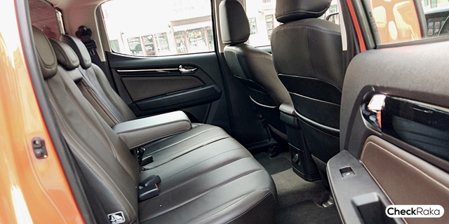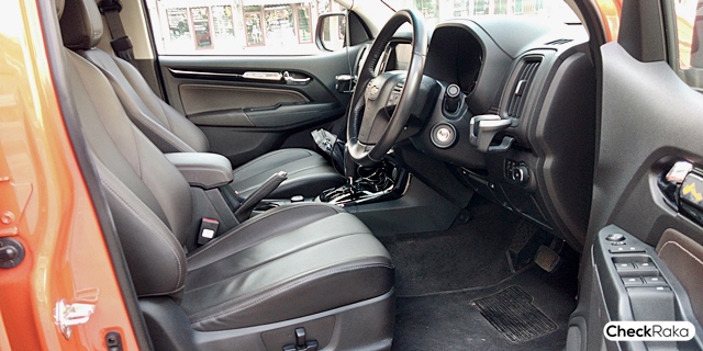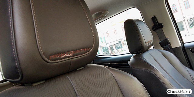 ภายในโทนสีน้ำตาลเข้ม หมอนพิงเบาะคู่หน้าปักโลโก้ "High Country" ปรับไฟฟ้าฝั่งคนขับ 6 ทิศทาง คอลโซลหน้าทรงหน้าดูแข่งแกร่ง พวงมาลัยพร้อมสวิตช์ควบคุมเครื่องเสียงและจอแสดงผลต่างๆ