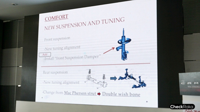 ช่วงล่างใหม่ เงียบนุ่มนวล โดยทุกรุ่นย่อยใช้ช่วงล่างด้านหน้าอิสระแม็คเฟอร์สันสตรัทด้านหลังอิสระแบบปีกนกคู่ Double Wishbone