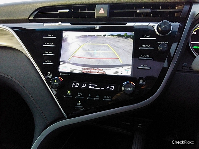 มาตรวัดเรืองแสง Optitron พร้อมจอแสดงผลข้อมูลการขับขี่ TFT ขนาด 7 ส่วนเครื่องเสียงจอสัมผัส 7 นิ้ว ในรุ่น 2.5 G และ 8 นิ้วในรุ่น 2.5 HV เทคโนโลยีล้ำหน้า T-Connect Telematics เชื่อคุณและรถเป็นหนึ่งเดียว หน้าจอแสดงผลข้อมูลการขับขี่แบบสีบนกระจกหน้ารถ เครื่องเล่น DVD แบบหน้าจอสัมผัสขนาด 8 นิ้ว ลำโพง JBL 9 ตำแหน่ง ออกแบบระบบเสียงให้เหมาะสมกับคัมรี่ใหม่โดยเฉพาะจากทีมงานช่างเทคนิคของ JBL Audio