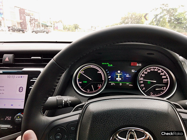 โดยรวมแล้วการขับใช้งานบนถนนทั่วไป เงียบราบรื่น นุ่มนวลตามคาด แต่การทรงตัวและเข้าโค้งต่างๆ นั้นดีกว่าที่คิดเอาไว้ คัมรี่ ใหม่ ให้ความนิ่งขณะเลี้ยวโค้ง เปลี่ยนเลน และการเบรค พวงมาลัยกระชับควบคุมได้ฉับไวมากขึ้นและให้น้ำหนักที่มั่นใจตลอดการเดินทาง