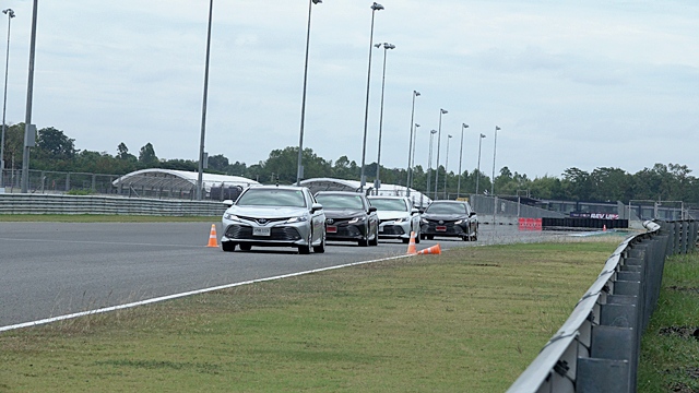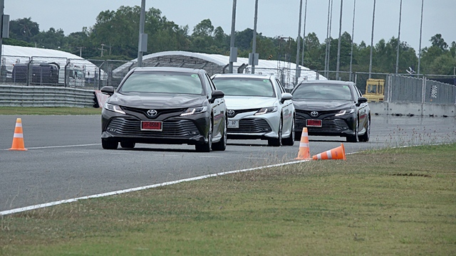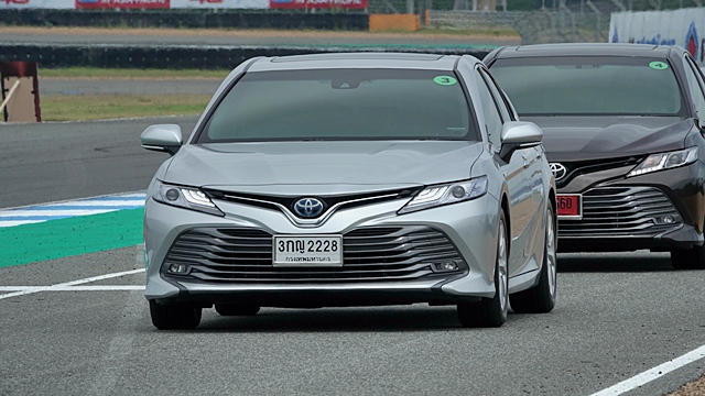 All new Toyota Camry ใหม่ รถยนต์ซีดานสุดหรูที่อัดเทคโนโลยี TNGA ใหม่ในทุกรายละเอียดเข้าไป เช่น โครงสร้างตัวถังรถ ระบบช่วงล่าง ภายนอก-ภายใน เครื่องยนต์และระบบไฮบริดเจนที่ 4 และรุ่นเบนซิน 2.5 ลิตร มาพร้อมเกียร์ใหม่ 8 จังหวะ โดยมีรถร่วมทดสอบ 10 คันทั้ง 2.5 HV Hybrid และ 2.5 G ทั้งเส้นทาง On-Road / On-Track สนามช้าง จ.บุรีรัมย์