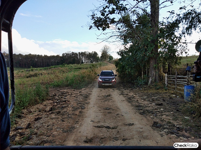 นอกจากนี้ตลอดเส้นทางขึ้นน้ำตกต้องเจอกับทางขึ้น-ลงที่มีความชันและแคบมาก เมื่อเจอผิวถนนเปียกลื่นบวกกับความชันและแคบก็นับว่าทั้งคนและรถต้องควบคุมได้ดี นอกจากนี้พื้นผิวถนนในแบบ "ออฟโรด" ทำให้สั่นสะเทือนตลอดทาง แต่สำหรับอีซูซุ วีครอส แม็กซ์ที่มีช่วงล่างนุ่มนวลเป็นทุนเดิมอยู่แล้ว จึงทำให้ลดแรงกระเทือนลงไปได้มาก แต่ก็ยังมีสภาพผิวถนนบางช่วงทำให้กระเด้งกระดอนอยู่บ้าง