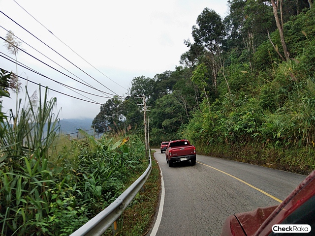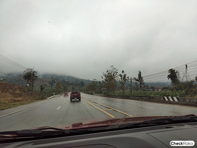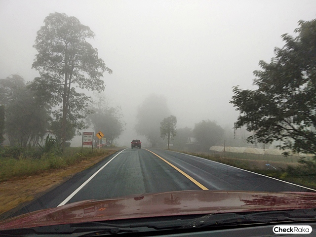 ในวันที่เดินทางนั้นแม้จะเป็นเวลาสายๆ แล้วแต่ก็มีหมอกเกือบตลอดทาง ทำให้ทัศนวิสัยไม่ค่อยดีนัก ประกอบกับพื้นผิวถนนที่ชื่นในบางช่วง แต่รถก็สามารถขับผ่านไปได้ด้วยดี