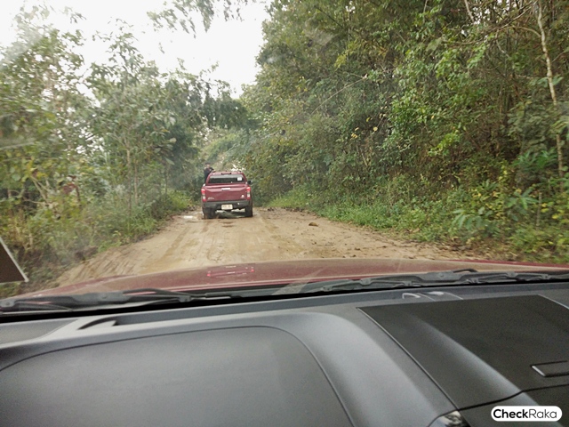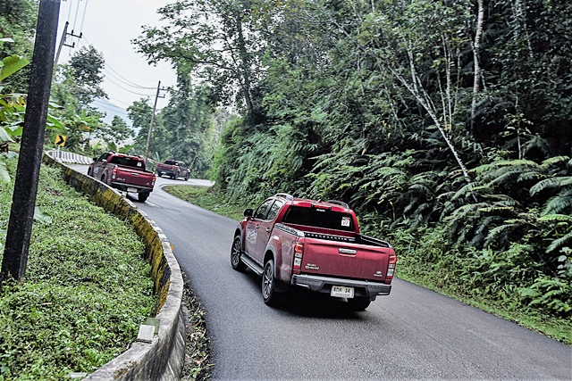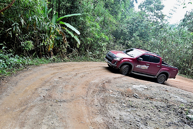 เมื่อดื่มด่ำกับความงามของน้ำตกเรียบร้อยก็ต้องเดินทางกลับสู่ที่พักโดยใช้เส้นทางเดิมอีกรอบ ซึ่งความโหดมันฮาก็ไม่ต่างจากขามา แถมด้วยขากลับมีบางช่วงที่ต้องขับในเลนซ้ายฝั่งที่สภาพถนนพังอีกด้วย แต่ Isuzu V-Cross Max 4X4 เอาอยู่ และรวมระยะทางไป-กลับจุดนี้ประมาณ 93 กิโลเมตร