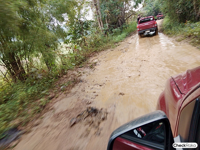 เส้นทางเริ่มที่จะเละหลังจากฝนตกในวันก่อนเดินทางมาถึง