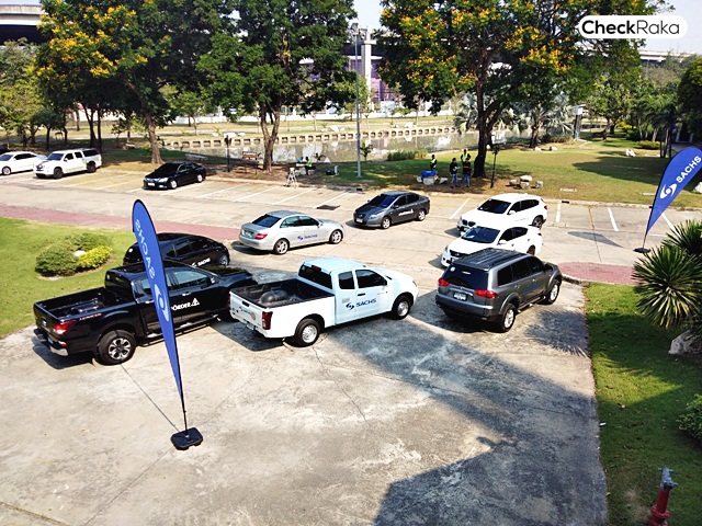 ในการทดสอบครั้งนี้มีรถยนต์หลากหลายรุ่นทั้งรถยนต์เก๋ง ปิคอัพ และ SUV รวม 8 คัน ช่วงระหว่างปีผลิตตั้งแต่ 2008 - 2016 ที่ได้นำมาสลับเปลี่ยนโช้คอัพใหม่ของ SACHS ทั้งชุด โดยใช้เส้นทางกรุงเทพฯ - นครนายก พร้อมสื่อมวลชนกว่า 30 คน