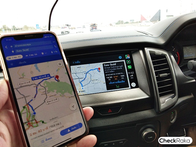 โดยปกติระบบการเชื่อมต่อโทรศัพท์เข้ากับระบบหน้าจอในรถยนต์บางรุ่นมักมีขั้นตอนเยอะและอาจไม่ทันใจ แต่ในระบบความบันเทิงจองฟอร์ดนั้นเพียงแค่ต่อสาย USB จากโทรศัพท์สมาร์ทโฟนเท่านั้น หน้าจอแบบ Mirror link ก็พร้อมใช้งาน โดยเฉพาะเมื่อเปิด "Google Map" เพื่อนำทาง นอกจากนี้ยังฝังเพลงเพลินๆ ได้สะดวกอีกด้วย โดยรองรับทั้ง Apple CarPlay และ Android Auto