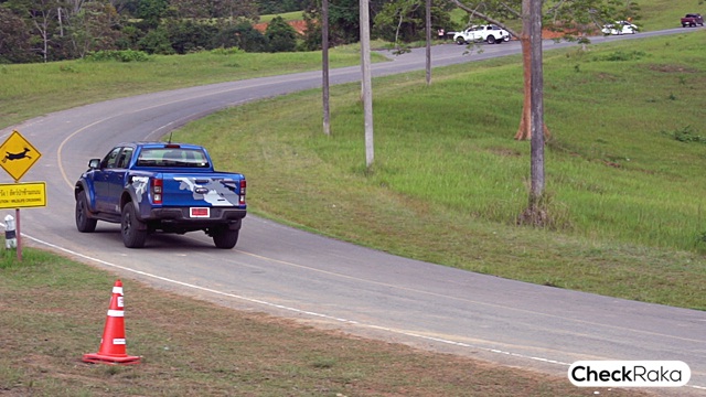 แต่เมื่อขับเรนเจอร์แร็พเตอร์ แม้จะมีหลุมลึกหรือเน้นกระดก โดยเฉพาะคอสะพานในทางหลวงขนาดเล็กๆ หรือทางหลวงชนบท ก็สามารถ "รูด" ผ่านไปได้อย่างปลอดภัย โดยไม่ต้องหักหลบหรือเบรกอย่างรุนแรงจนรถเกิดการเสียหลัก นับเป็นข้อดีของรถที่มีช่วงล่างระดับเทพพร้อมปรับโหมดการขับขี่ตามสภาพถนนได้ตรงกับการขับขี่จริง