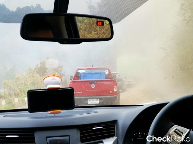 แม้ช่วงล่างมาในสไตล์ของปิกอัพที่เน้นลุยงานหนัก เพราะจับอาการถึงความแข็งกร้าวได้มากกว่าเทอร์ร่า แต่ด้วยเครื่องยนต์และแรงม้าที่ให้มาพร้อมดันกำลังให้รถผ่านช่วงโค้งของเขา และทางฝุ่นลุยผ่านมาได้ไม่ปัด ไม่โยกอย่างที่คิด บวกกับออพชั่นความสะดวกสบายภายใน (เครื่องเสียงในความรู้สึกจะดีกว่าเทอร์ร่านะ) ก็พอให้ลืมอาการพะอืดพะอมได้ชั่วขณะ