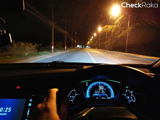 ผู้เขียนวางแผนการเดินทางไว้กับเส้นทางยอดนิยม กรุงเทพฯ - ระยอง - จันทบุรี โดย วันแรก เดินทางจากกรุงเทพมุ่งสู่หาดแม่รำพึงจังหวัดระยอง ผู้เขียนออกจากกรุงเทพฯ ในช่วงบ่ายใช้เส้นทางที่หลายคนคุ้นเคยคือ มอเตอร์เวย์ ที่ขยายครอบคลุมบายพาสจนถึงตัวเมืองพัทยา แต่แยกออกที่ด่านโป่ง 3 เข้าสู่ทางหลวงหมายเลข 36 มุ่งหน้าจังหวัดระยอง โดยเลี่ยงช่วงตัวเมือง เมื่อขับมาบรรจบทางหลวงหมายเลข 3 สุขุมวิท เส้นหลักแล้วก็ตัดเข้าเส้น 1001 เพื่อขับไปตามถนนเลียบชายทะเล เข้าที่พักตรงหาดแม่รำพึง ด้วยระยะทางสองร้อยกว่า กม. กับเส้นทางที่คุ้นเคย รู้สึกได้ชัดเจนถึงความแตกต่างที่ก่อนหน้ามักใช้รถยนต์เครื่องยนต์เบนซิน 1.6 ลิตร เกียร์อัตโนมัติเดินทาง ด้วยทัศนวิสัยด้านหน้าที่กว้าง ช่วงล่างนุ่มนวล แรงบิดที่ดีเยี่ยม ทำให้การขับเพลิดเพลินกว่าที่เคย และการเร่งแซงรถช้าด้านหน้าก็ทำได้ง่าย ใช้ระยะและเวลาสั้นกว่าที่เคย นอกจากนี้พวงมาลัยก็ตอบสนองได้อย่างดีเยี่ยมเช่นกัน มีความฉับไวและเที่ยงตรง ส่วนระบบเบรกเป็นสิ่งที่ส่วนตัวผู้เขียนไม่ค่อยชอบฟีลลิ่งการตอบกลับในฮอนด้าหลายรุ่น แต่สำหรับซีวิคแฮทช์แบค ใหม่ ช่วงแรกที่ขับในเมืองใช้ความเร็วต่ำก็ยังคงรู้สึกเช่นนั้น พอขับทางไกลใช้ความเร็วได้ต่อเนื่อง การเบรกชะลอความเร็วเริ่มให้ความรู้สึกที่น่าพอใจ แม้เบรกจนหยุดนิ่งก็มั่นใจว่าพลังเบรกดีมาก