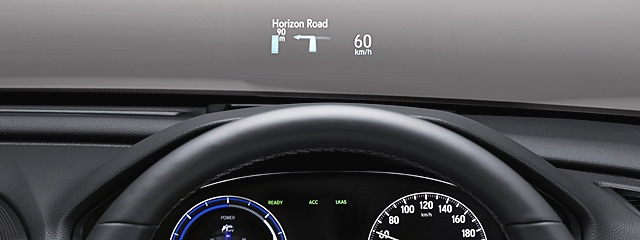 ระบบแสดงข้อมูลบนกระจกหน้า (Head-Up Display : HUD) ช่วยให้มองเห็นข้อมูลต่างๆ โดยไม่ต้องละสายตาจากถนน